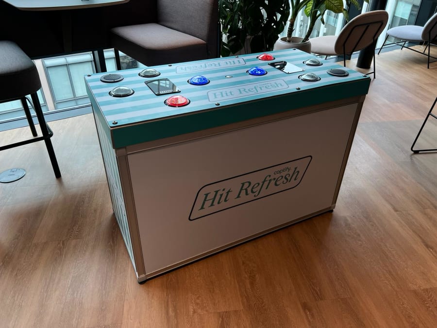 This interactive digital game is a head-to-head memory challenge, where players compete to memorise and repeat a sequence of lights. Make a mistake and you’re out! It’s simple, yet highly addictive, drawing people in and creating excitement. With its fast-paced, competitive nature, it’s ideal for events like corporate event hire, exhibition games, and team-building days, and is sure to be a highlight at any gathering.